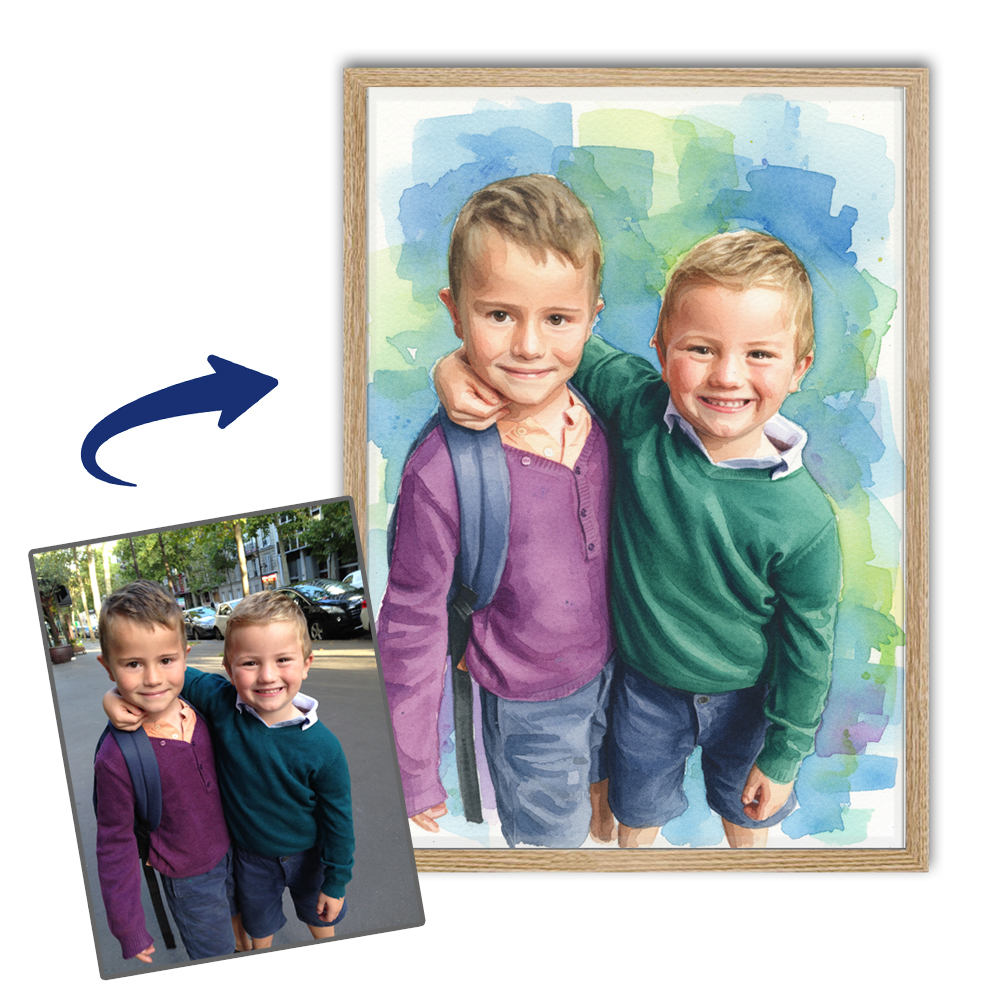Na goedkeuring drukken wij uw kunstwerk af op het materiaal van uw keuze: canvas, ingelijst poster, mok, drinkfles, deurbord, herinneringsdoos en nog veel meer. Geef (of krijg) een onvergetelijk aandenken waarin kunst, technologie en emotie samenkomen!