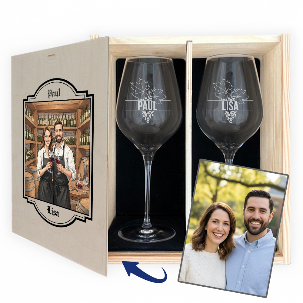Ontdek een ruime assortiment wijnpakketten. Elk pakket bevat een fles drank naar keuze, en 1 of 2 glazen. Je kunt het houten kist en de glazen laten graveren met je eigen naam of tekst, en de fles personaliseren met een bedrukt etiket.Je kunt tussen verschillende designs kiezen om dit cadeau helemaal uniek te maken. Ontzettend leuk voor een verjaardag, bruiloft, jubileum of om iemand te bedanken.